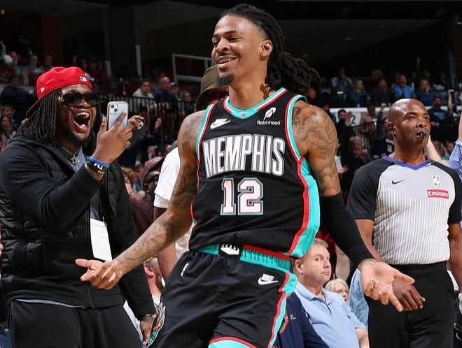 活脱脱的摆烂神器。我还记得3年前,NBA在22-23赛季MVP榜单首期排名中,莫兰特曾力压字母哥,排名第一。而那个赛季,莫兰特前半程MVP排名没掉出过前五,那只是他生涯第四年,意气风发,前一赛季被勇士(22年总冠军)淘汰出局,莫兰特多次公开呛声勇士,和克莱格林对喷,俨然不把任何人放在眼里。也就是从那个赛季起,莫兰特成了NBA最嚣张狂妄的球队老大。经典言论“我们在西部没对手了”,叫嚣爱德华兹表现不如自己,场外直播惹是生非就算了,上赛季还在比赛中多次做出咬掉保险栓+投掷+捂耳朵的动作。