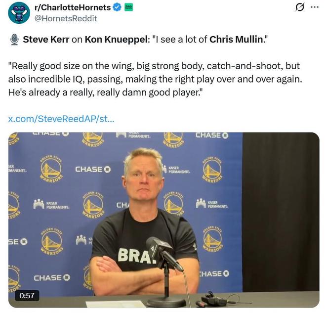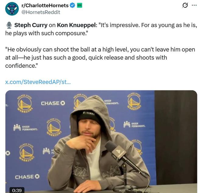 面对克努佩尔这样的表现,勇士队将帅科尔与库里先后在赛后公开点名称赞这名年仅20岁的新秀。