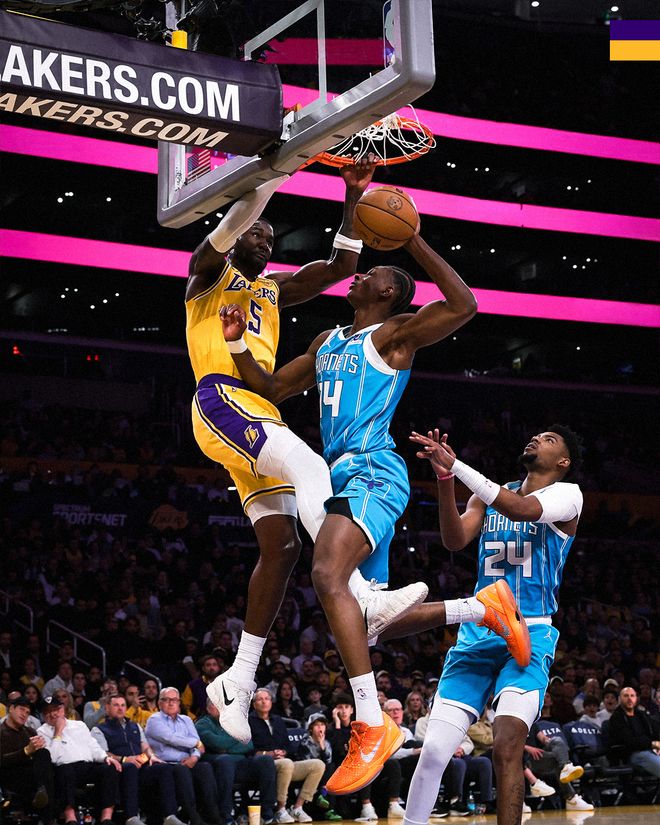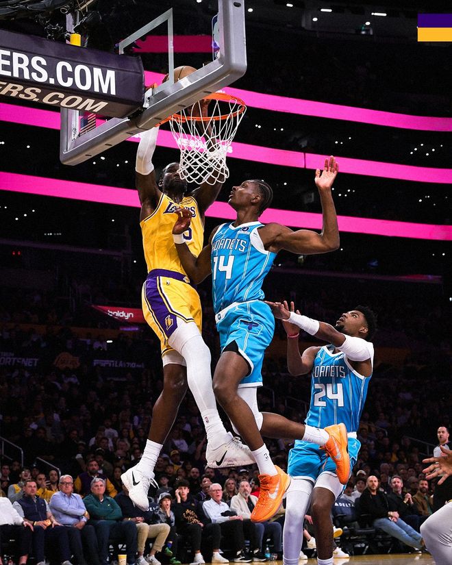 黄蜂队的布里奇斯上半场得到17分、6个篮板和3次助攻,米勒得到13分,科奴佩尔得到9分和5个篮板;湖人队的东契奇得到19分,勒布朗得到10分。