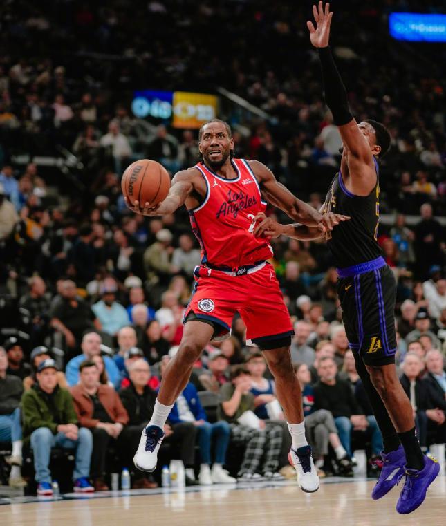 在哈登频频打铁的情况下,莱昂纳德成为了球队最稳定的终结点,不仅得到了全队最高的24分, 此外还有5个篮板和4次助攻的数据进账,除此之外,莱昂纳德还把和他对位的勒布朗詹姆斯命中率限制到了19中9,后者虽然交出了23+5+6+2的个人数据,但是也出现了4次的失误。