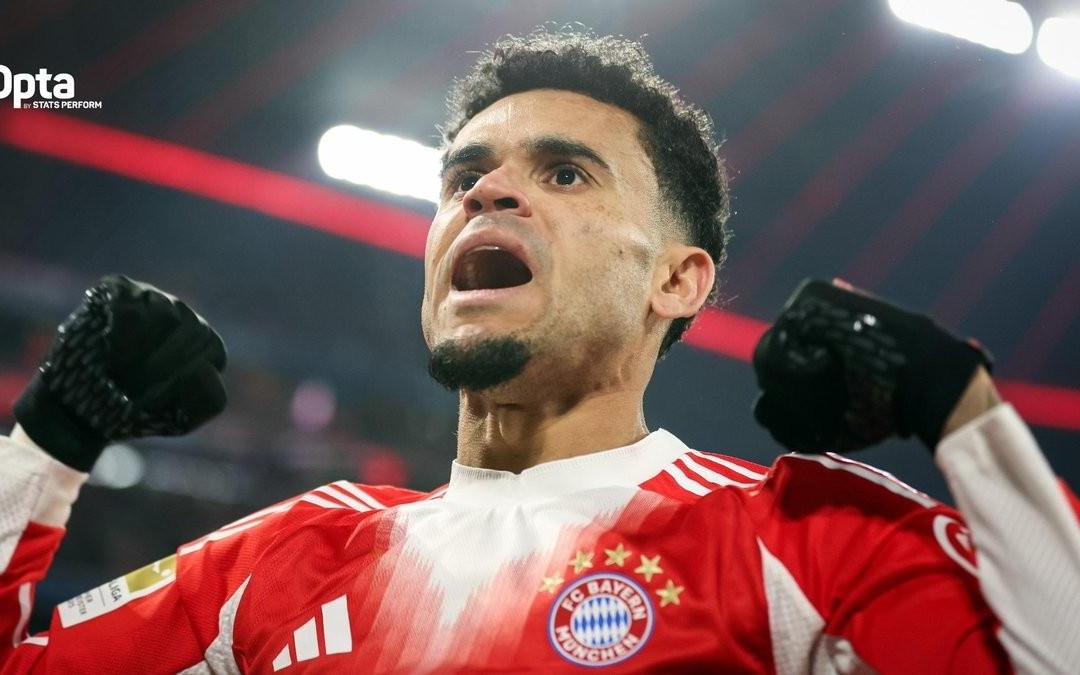 迪亚斯本赛季德甲3次单场参与至少3球,仅次于凯恩