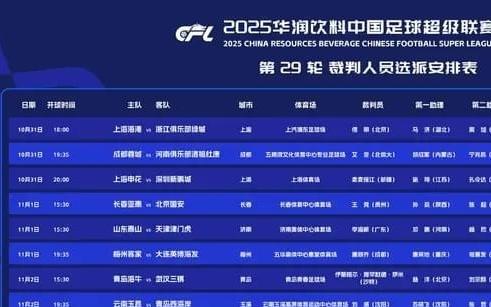 中超29轮裁判安排:买买提江执法申花三分稳了,青岛海牛运气不佳