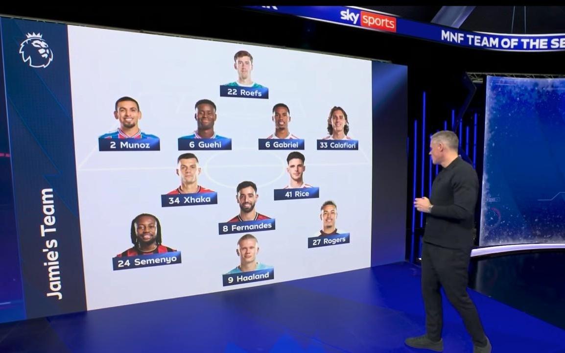 卡拉格评本赛季英超至今最佳阵容:无利物浦和切尔西球员