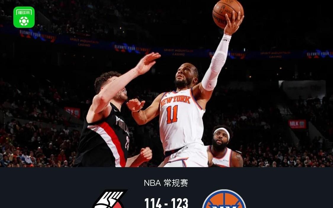 尼克斯123114终结开拓者5连胜,杨瀚森未登场,阿夫迪亚25分伤退