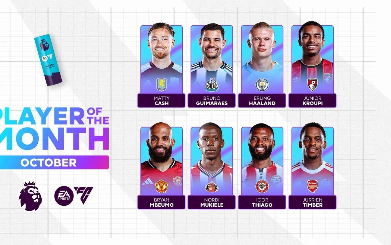英超10月最佳球员候选:哈兰德、姆伯莫、廷贝尔等多人在列