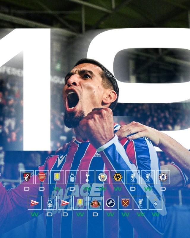 水晶宫跨赛季19场不败创队史纪录