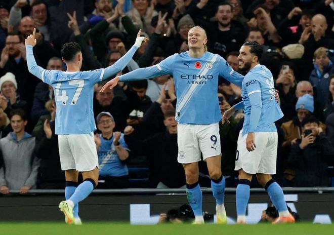 本场比赛曼城排出了4321阵型。哈兰德顶在最前面。谢尔基和多库在他身后。伯纳多-席尔瓦、尼科-冈萨雷斯和福登联袂出击。努内斯、鲁本-迪亚斯、格瓦迪奥尔和奥赖利4后卫首发出战。多纳鲁马担任首发门将。曼城首发阵容总身价6.72亿欧元。而伯恩茅斯首发阵容总身价只有2.6亿欧元。