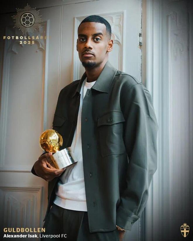 12月19日,瑞典足协官方消息,利物浦前锋亚历山大·伊萨克荣获2025年瑞典金球奖。这一荣誉主要归功于他今年上半年在纽卡斯尔联的卓越表现。