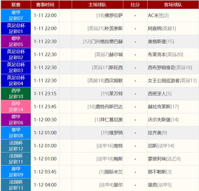 其他赛事比分: