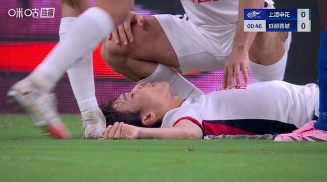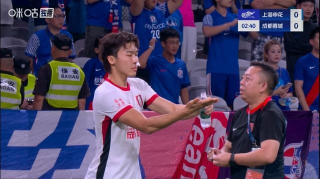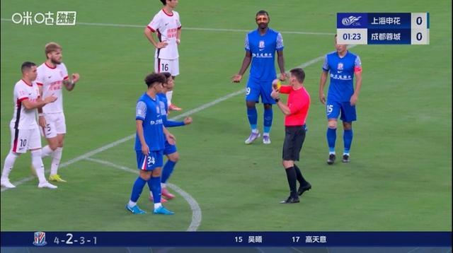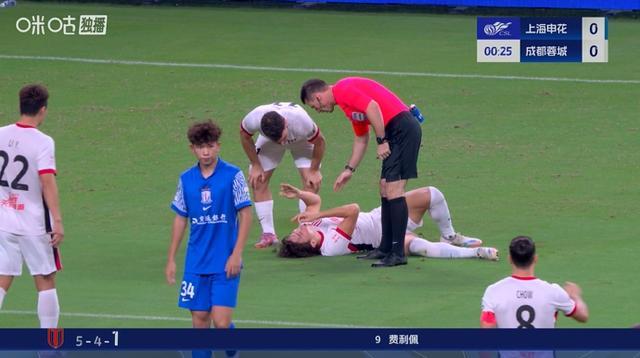 直播吧09月21日宣 中超第25轮,上海申花vs成都蓉城。比赛开场仅20秒,元敏诚与刘诚宇边路对抗后倒地不起,随后刘诚宇被主裁出示黄牌。
